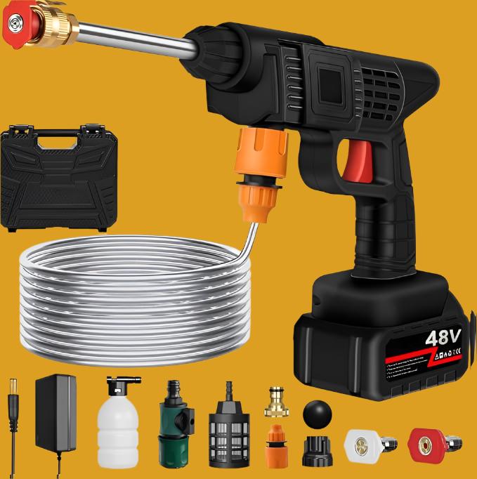 With a 48V dual-battery system, this cleaning gun delivers powerful pressure to tackle dirt and grime. Its cordless design ensures freedom of movement, making cleaning tasks efficient and hassle-free.